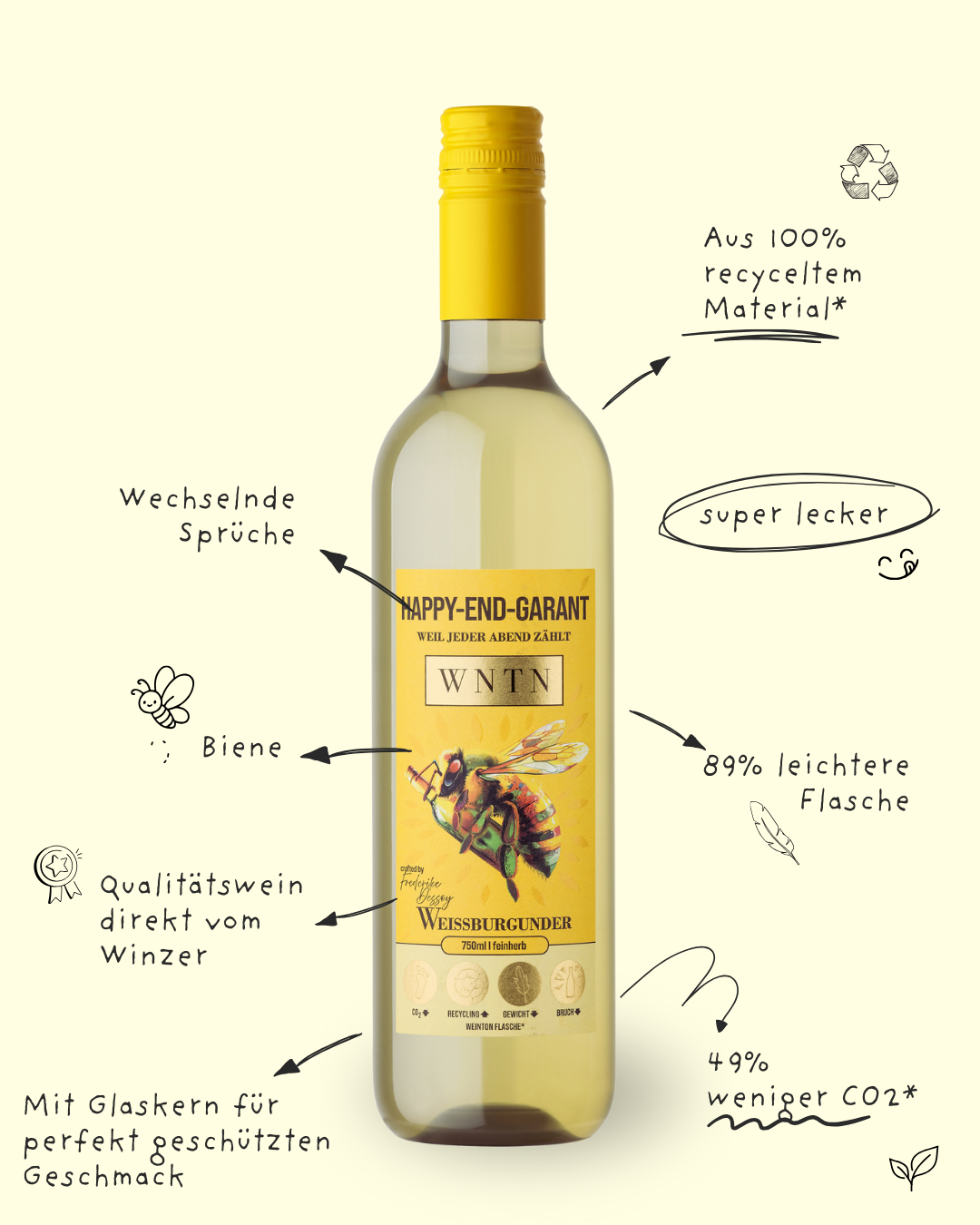 *im Vergleich zur herkömmlichen Einweg-Glasweinflasche