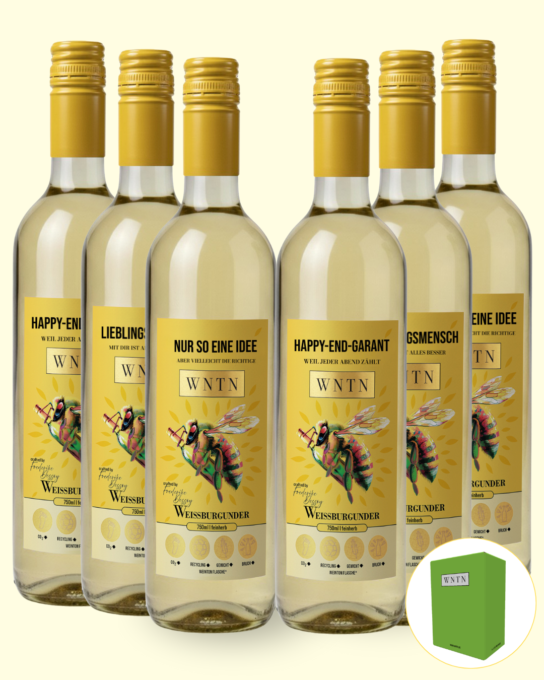 Freu dich auf sechs charmante Weißburgunder mit eigenem Charakter – jede Flasche mit einem eigenen Spruch und einer Extraportion Persönlichkeit. Ideal zum Verschenken, Teilen oder selbst Genießen. Hinweis: Die Kombination der Sprüche kann von der Produktabbildung abweichen.