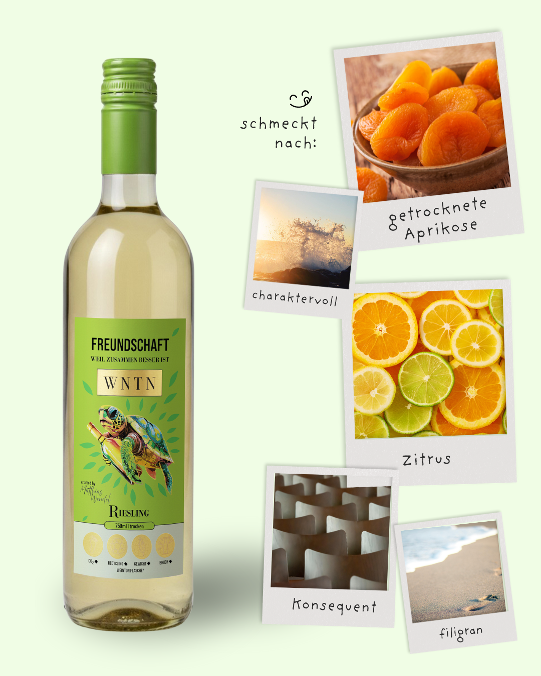 Riesling: Konsequent, charaktervoll, getrocknete Aprikose, Zitrus, ein Erlebnis, filigran.